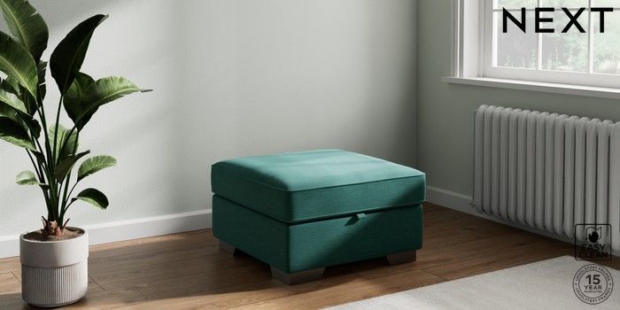 7.3.1 Buy Stamford Storage Footstool Fine Chenille Easy Clean Dark Juniper Green Square Angle - Gunmetal from the Seasons online shop Click here to use our website with more accessibility support, for example screen readers