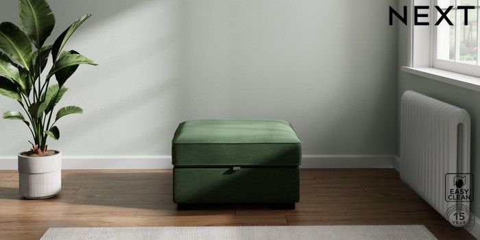 7.2.10 Buy Stamford Storage Footstool Fine Chenille Easy Clean Mid Khaki Green Square Angle - Dark from the Seasons online shop Click here to use our website with more accessibility support, for example screen readers