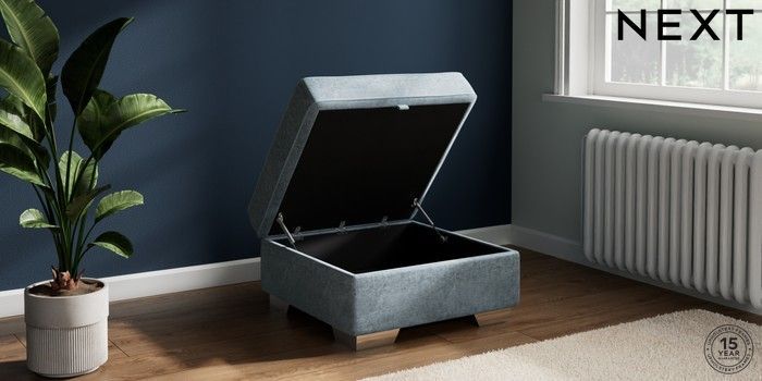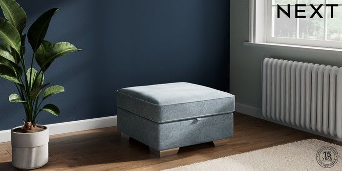 7.2.10 Buy Stamford Storage Footstool Plush Chenille Light Blue Square Angle - Chrome Metal from the Seasons online shop Click here to use our website with more accessibility support, for example screen readers