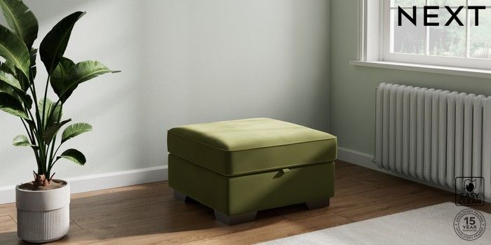 7.3.1 Buy Stamford Storage Footstool Plush Velvet Easy Clean Mid Olive Green Square Angle - Gunmetal from the Seasons online shop Click here to use our website with more accessibility support, for example screen readers