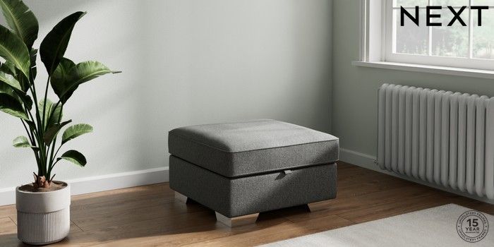 7.3.1 Buy Stamford Storage Footstool Tweedy Chenille Dark Grey Square Angle - Chrome Metal from the Seasons online shop Click here to use our website with more accessibility support, for example screen readers