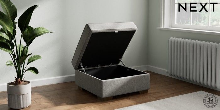 7.2.10 Buy Stamford Storage Footstool Tweedy Chenille Mid Grey Square Angle - Mid from the Seasons online shop Click here to use our website with more accessibility support, for example screen readers