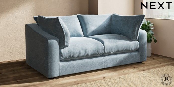 7.2.10 Buy The Sumptuous Deep Relaxed Sit 3 Seater Sofa Plush Chenille Light Blue Low Tube - Dark from the Seasons online shop Click here to use our website with more accessibility support, for example screen readers