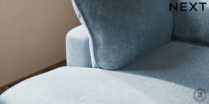 7.2.10 Buy The Sumptuous Deep Relaxed Sit Medium Sofa Chaise - Left Hand Plush Chenille Light Blue Low Tube - Dark from the Seasons online shop Click here to use our website with more accessibility support, for example screen readers