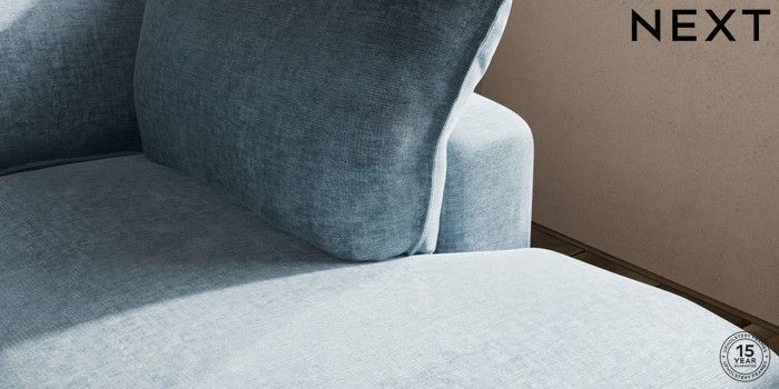 7.2.10 Buy The Sumptuous Deep Relaxed Sit Medium Sofa Chaise - Right Hand Plush Chenille Light Blue Low Tube - Mid from the Seasons online shop Click here to use our website with more accessibility support, for example screen readers