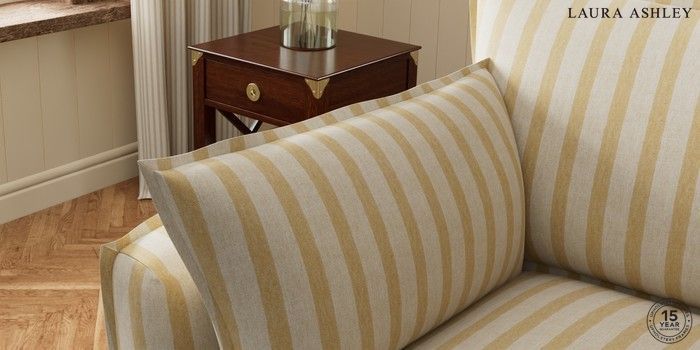 7.3.1 Buy Westerham by Laura Ashley 3 Seater Small Sofa Kinsham Stripe Ochre Yellow Glide from the Seasons online shop Click here to use our website with more accessibility support, for example screen readers