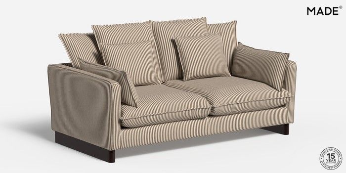 7.3.1 Buy Whitby by Made 3 Seater Sofa Velvet Stripe Beige Natural Sleigh - Dark Brown from the Seasons online shop Click here to use our website with more accessibility support, for example screen readers