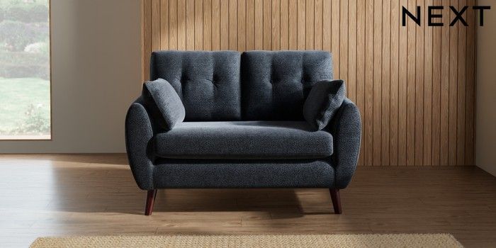 7.3.1 Buy Wilson Buttoned Back 2 Seater Small Sofa Boucle Chenille Dark Slate Blue Retro Tapered - Dark Brown from the Seasons online shop Click here to use our website with more accessibility support, for example screen readers