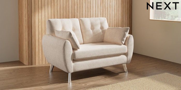 7.3.1 Buy Wilson Buttoned Back 2 Seater Small Sofa Boucle Chenille Oyster Metal Tapered - Chrome from the Seasons online shop Click here to use our website with more accessibility support, for example screen readers
