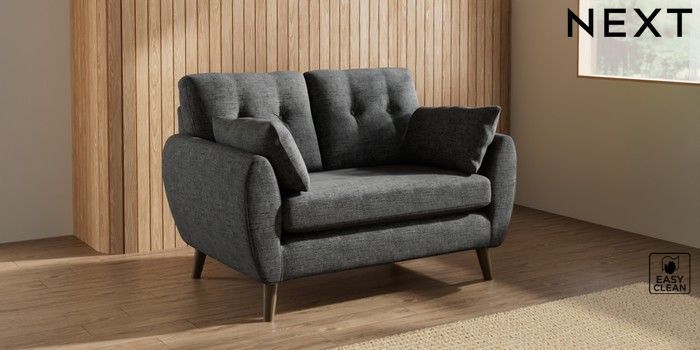 7.3.1 Buy Wilson Buttoned Back 2 Seater Small Sofa Boucle Weave Easy Clean Charcoal Grey Retro Tapered - Mid from the Seasons online shop Click here to use our website with more accessibility support, for example screen readers