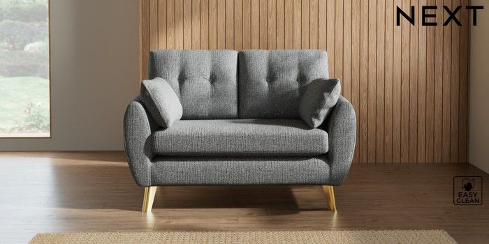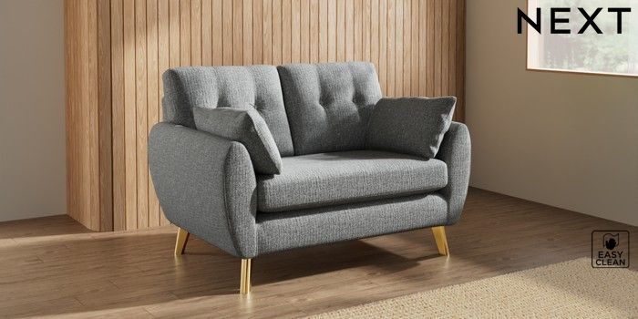 7.3.1 Buy Wilson Buttoned Back 2 Seater Small Sofa Chunky Boucle Easy Clean Mid Grey Metal Tapered - Gold from the Seasons online shop Click here to use our website with more accessibility support, for example screen readers