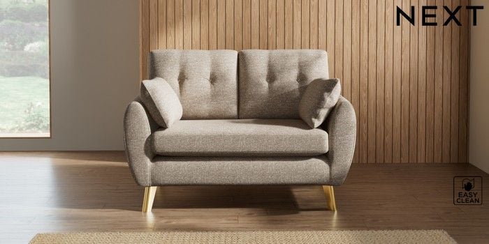 7.3.1 Buy Wilson Buttoned Back 2 Seater Small Sofa Chunky Boucle Easy Clean Mid Natural Metal Tapered - Gold from the Seasons online shop Click here to use our website with more accessibility support, for example screen readers