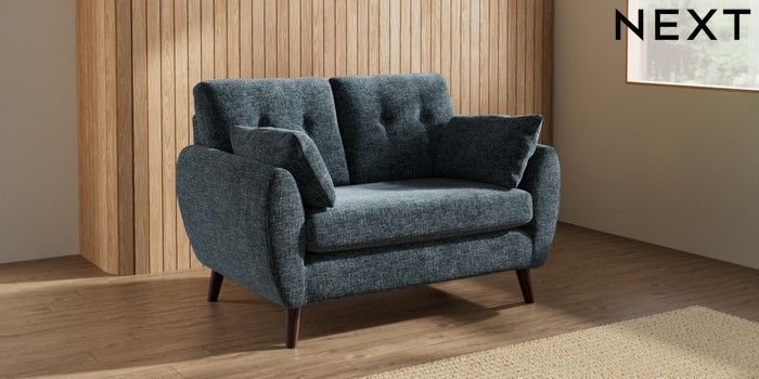 7.3.1 Buy Wilson Buttoned Back 2 Seater Small Sofa Chunky Chenille Dark Navy Blue Retro Tapered - Dark Brown from the Seasons online shop Click here to use our website with more accessibility support, for example screen readers