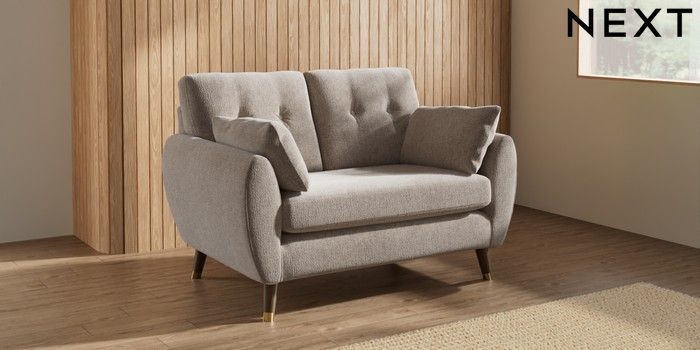 7.3.1 Buy Wilson Buttoned Back 2 Seater Small Sofa Chunky Chenille Light Dove Low Retro Tapered Metal Cap - Mid from the Seasons online shop Click here to use our website with more accessibility support, for example screen readers