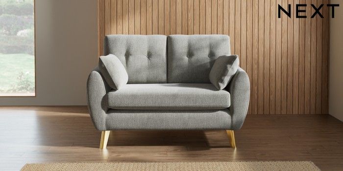 7.3.1 Buy Wilson Buttoned Back 2 Seater Small Sofa Chunky Chenille Light Grey Metal Tapered - Gold from the Seasons online shop Click here to use our website with more accessibility support, for example screen readers