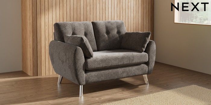 7.3.1 Buy Wilson Buttoned Back 2 Seater Small Sofa Chunky Chenille Mink Brown Metal Tapered - Chrome from the Seasons online shop Click here to use our website with more accessibility support, for example screen readers