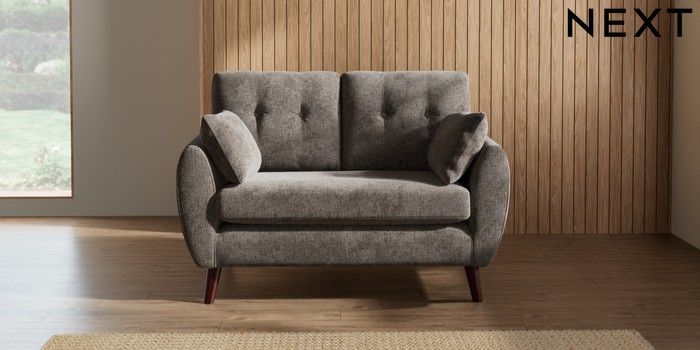 7.3.1 Buy Wilson Buttoned Back 2 Seater Small Sofa Chunky Chenille Mink Brown Retro Tapered - Dark Brown from the Seasons online shop Click here to use our website with more accessibility support, for example screen readers