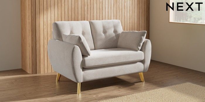7.3.1 Buy Wilson Buttoned Back 2 Seater Small Sofa Chunky Chenille Oyster Metal Tapered - Gold from the Seasons online shop Click here to use our website with more accessibility support, for example screen readers