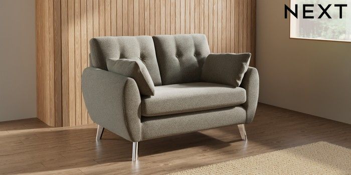 7.3.1 Buy Wilson Buttoned Back 2 Seater Small Sofa Chunky Marl Light Olive Green Metal Tapered - Chrome from the Seasons online shop Click here to use our website with more accessibility support, for example screen readers