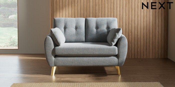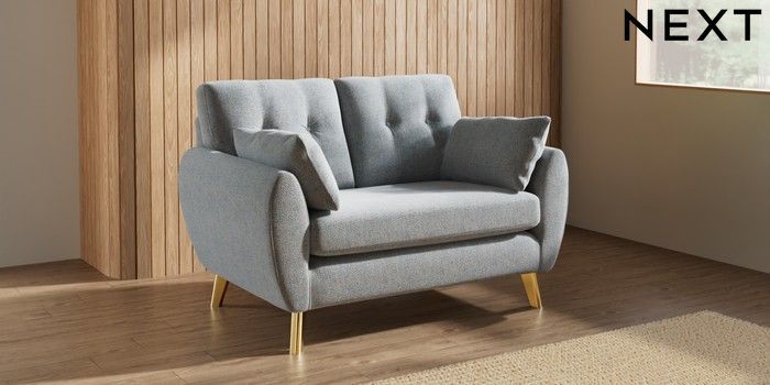 7.3.1 Buy Wilson Buttoned Back 2 Seater Small Sofa Chunky Marl Mid Grey Metal Tapered - Gold from the Seasons online shop Click here to use our website with more accessibility support, for example screen readers