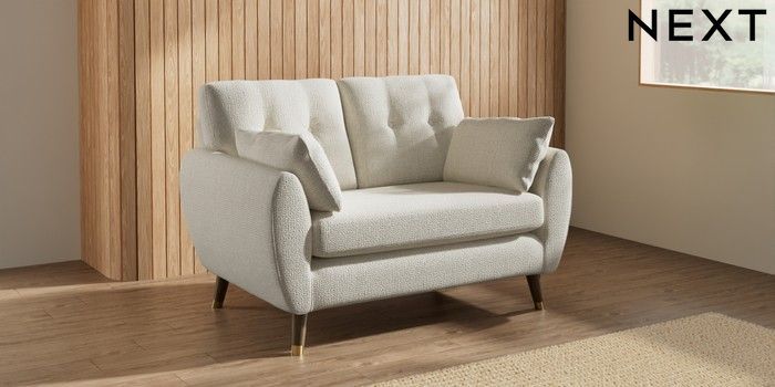 7.3.1 Buy Wilson Buttoned Back 2 Seater Small Sofa Chunky Texture Oyster Low Retro Tapered Metal Cap - Mid from the Seasons online shop Click here to use our website with more accessibility support, for example screen readers