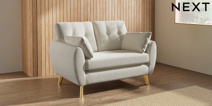 7.3.1 Buy Wilson Buttoned Back 2 Seater Small Sofa Chunky Texture Oyster Metal Tapered - Gold from the Seasons online shop Click here to use our website with more accessibility support, for example screen readers
