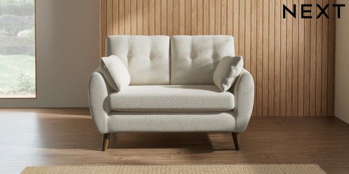 7.2.10 Buy Wilson Buttoned Back 2 Seater Small Sofa Chunky Texture Oyster Retro Tapered - Mid from the Seasons online shop Click here to use our website with more accessibility support, for example screen readers
