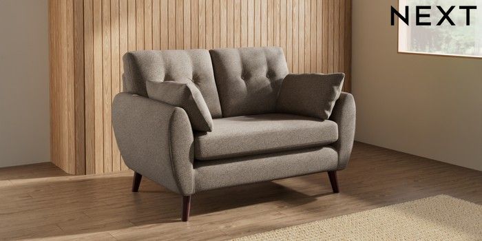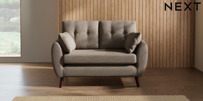 7.3.1 Buy Wilson Buttoned Back 2 Seater Small Sofa Chunky Weave Dark Natural Retro Tapered - Dark Brown from the Seasons online shop Click here to use our website with more accessibility support, for example screen readers