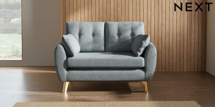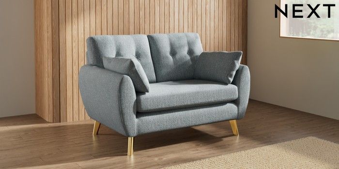 7.3.1 Buy Wilson Buttoned Back 2 Seater Small Sofa Chunky Weave Mid Blue Metal Tapered - Gold from the Seasons online shop Click here to use our website with more accessibility support, for example screen readers