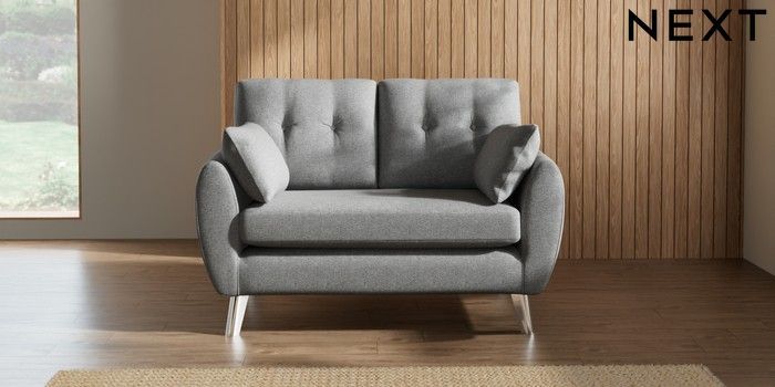 7.3.1 Buy Wilson Buttoned Back 2 Seater Small Sofa Chunky Weave Mid Grey Metal Tapered - Chrome from the Seasons online shop Click here to use our website with more accessibility support, for example screen readers
