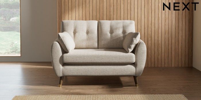 7.3.1 Buy Wilson Buttoned Back 2 Seater Small Sofa Chunky Weave Mid Natural Low Retro Tapered Metal Cap - Mid from the Seasons online shop Click here to use our website with more accessibility support, for example screen readers