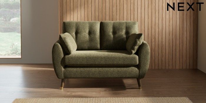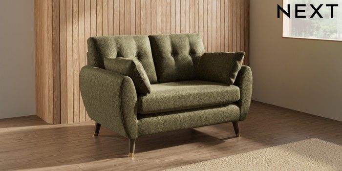 7.3.1 Buy Wilson Buttoned Back 2 Seater Small Sofa Cotswold Chenille Dark Green Low Retro Tapered Metal Cap - Mid from the Seasons online shop Click here to use our website with more accessibility support, for example screen readers