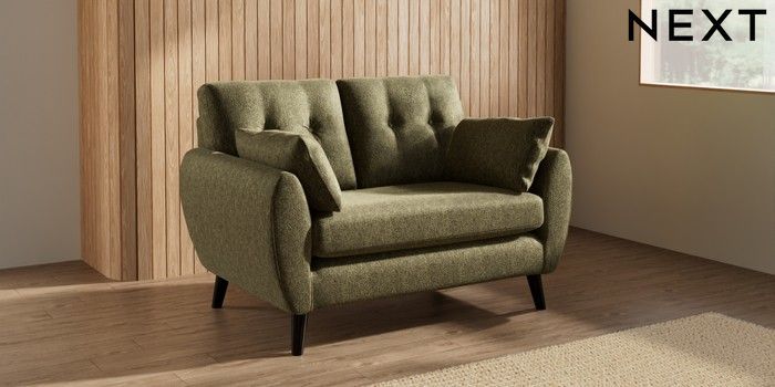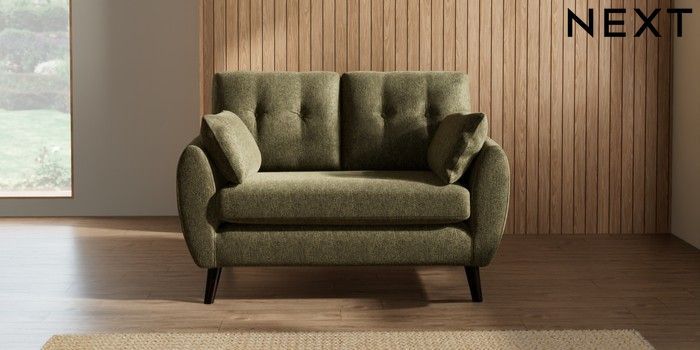 7.3.1 Buy Wilson Buttoned Back 2 Seater Small Sofa Cotswold Chenille Dark Green Retro Tapered - Dark from the Seasons online shop Click here to use our website with more accessibility support, for example screen readers