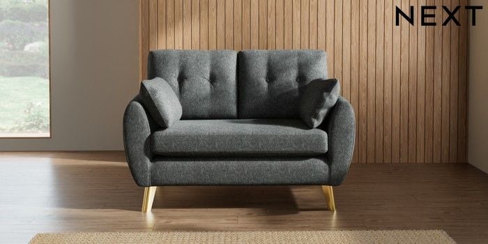 7.3.1 Buy Wilson Buttoned Back 2 Seater Small Sofa Cotswold Chenille Dark Grey Metal Tapered - Gold from the Seasons online shop Click here to use our website with more accessibility support, for example screen readers