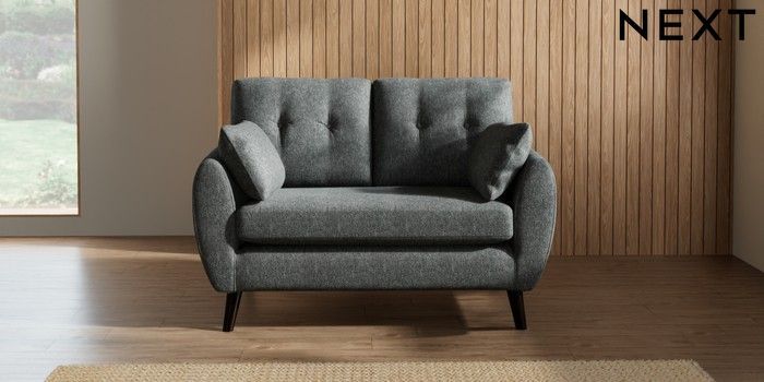 7.2.10 Buy Wilson Buttoned Back 2 Seater Small Sofa Cotswold Chenille Dark Grey Retro Tapered - Dark from the Seasons online shop Click here to use our website with more accessibility support, for example screen readers