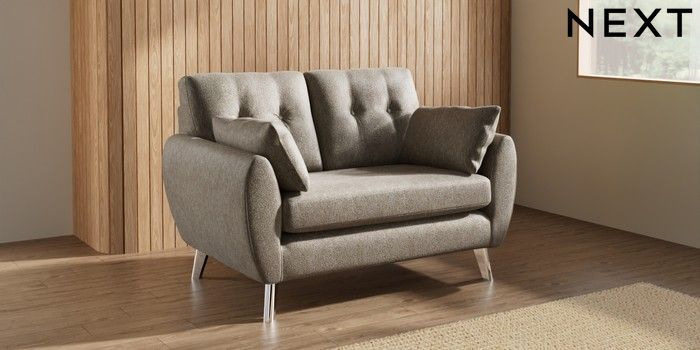 7.3.1 Buy Wilson Buttoned Back 2 Seater Small Sofa Cotswold Chenille Mid Mink Brown Metal Tapered - Chrome from the Seasons online shop Click here to use our website with more accessibility support, for example screen readers