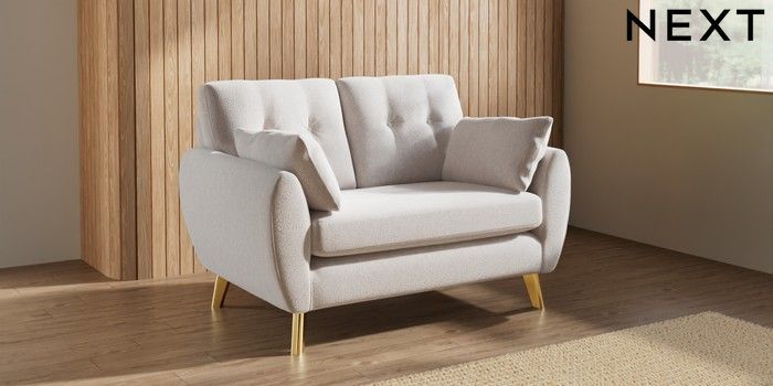 7.3.1 Buy Wilson Buttoned Back 2 Seater Small Sofa Cotswold Chenille Oyster Metal Tapered - Gold from the Seasons online shop Click here to use our website with more accessibility support, for example screen readers