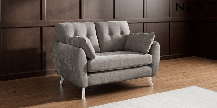 7.3.1 Buy Wilson Buttoned Back 2 Seater Small Sofa Distressed Velour French Grey Metal Tapered - Chrome from the Seasons online shop Click here to use our website with more accessibility support, for example screen readers