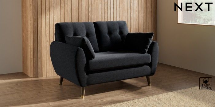 7.3.1 Buy Wilson Buttoned Back 2 Seater Small Sofa Fine Chenille Easy Clean Black Low Retro Tapered Metal Cap - Mid from the Seasons online shop Click here to use our website with more accessibility support, for example screen readers