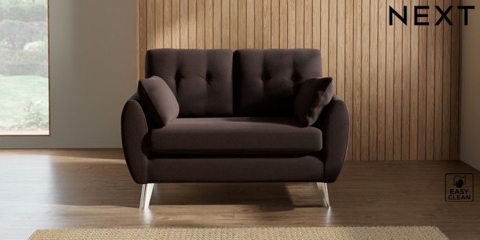 7.3.1 Buy Wilson Buttoned Back 2 Seater Small Sofa Fine Chenille Easy Clean Chocolate Brown Metal Tapered - Chrome from the Seasons online shop Click here to use our website with more accessibility support, for example screen readers