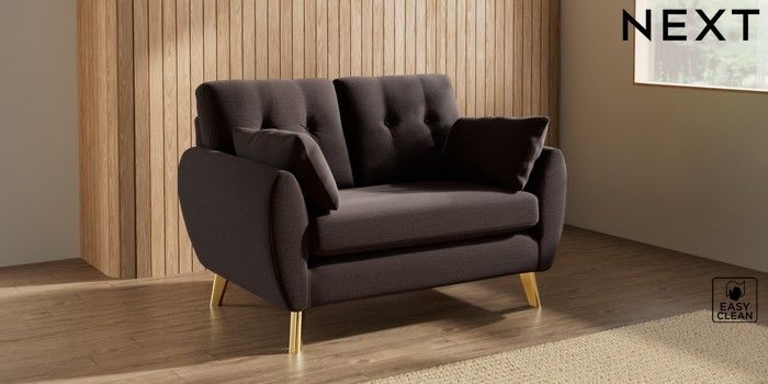 7.3.1 Buy Wilson Buttoned Back 2 Seater Small Sofa Fine Chenille Easy Clean Chocolate Brown Metal Tapered - Gold from the Seasons online shop Click here to use our website with more accessibility support, for example screen readers