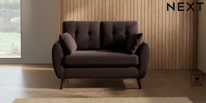 7.3.1 Buy Wilson Buttoned Back 2 Seater Small Sofa Fine Chenille Easy Clean Chocolate Brown Retro Tapered - Dark Brown from the Seasons online shop Click here to use our website with more accessibility support, for example screen readers