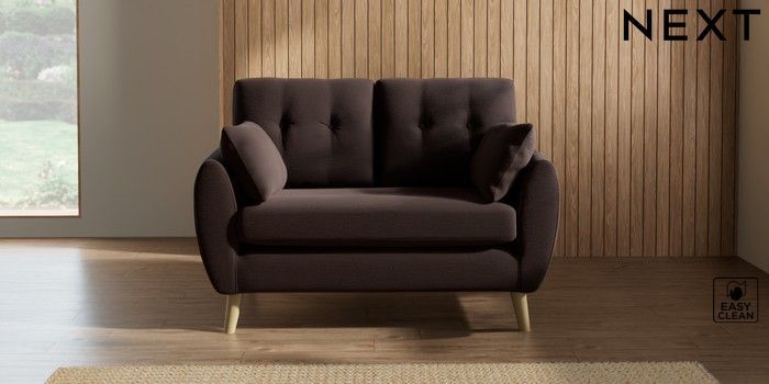 7.3.1 Buy Wilson Buttoned Back 2 Seater Small Sofa Fine Chenille Easy Clean Chocolate Brown Retro Tapered - Light from the Seasons online shop Click here to use our website with more accessibility support, for example screen readers