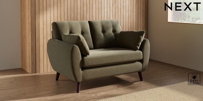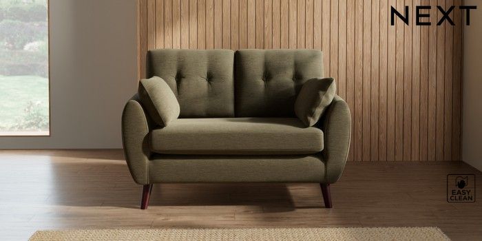 7.3.1 Buy Wilson Buttoned Back 2 Seater Small Sofa Fine Chenille Easy Clean Dark Moss Green Retro Tapered - Dark Brown from the Seasons online shop Click here to use our website with more accessibility support, for example screen readers