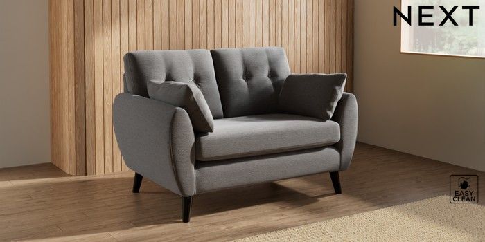 7.3.1 Buy Wilson Buttoned Back 2 Seater Small Sofa Fine Chenille Easy Clean Dark Smoke Grey Retro Tapered - Dark from the Seasons online shop Click here to use our website with more accessibility support, for example screen readers
