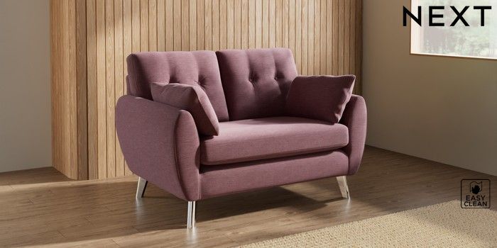 7.3.1 Buy Wilson Buttoned Back 2 Seater Small Sofa Fine Chenille Easy Clean Mid Mulberry Purple Metal Tapered - Chrome from the Seasons online shop Click here to use our website with more accessibility support, for example screen readers