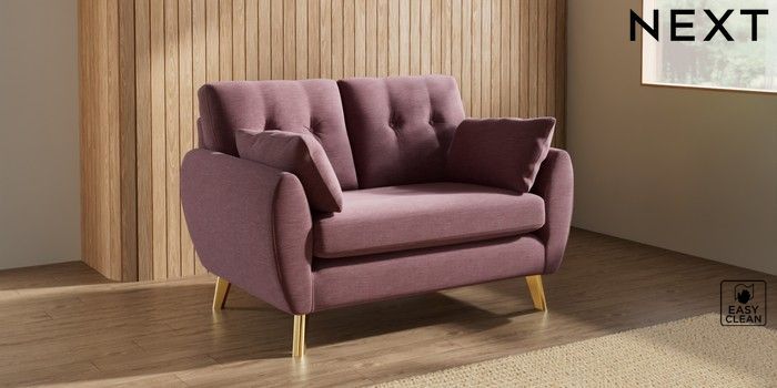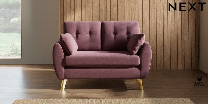 7.3.1 Buy Wilson Buttoned Back 2 Seater Small Sofa Fine Chenille Easy Clean Mid Mulberry Purple Metal Tapered - Gold from the Seasons online shop Click here to use our website with more accessibility support, for example screen readers