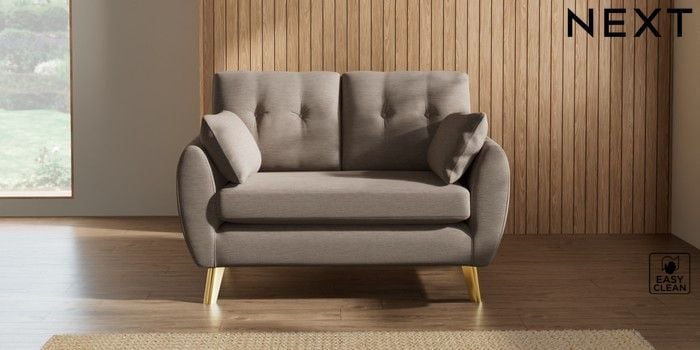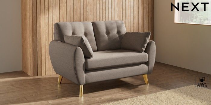 7.3.1 Buy Wilson Buttoned Back 2 Seater Small Sofa Fine Chenille Easy Clean Mid Taupe Brown Metal Tapered - Gold from the Seasons online shop Click here to use our website with more accessibility support, for example screen readers
