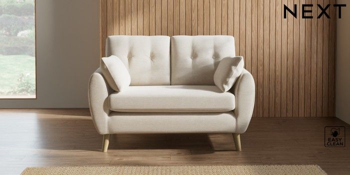 7.2.10 Buy Wilson Buttoned Back 2 Seater Small Sofa Fine Chenille Easy Clean Oyster Retro Tapered - Light from the Seasons online shop Click here to use our website with more accessibility support, for example screen readers