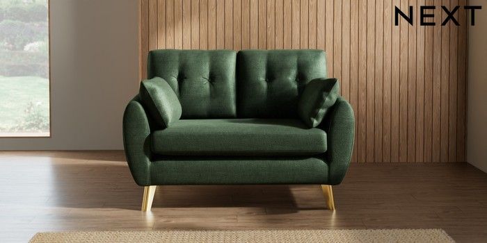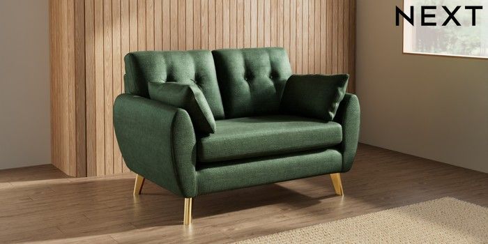 7.3.1 Buy Wilson Buttoned Back 2 Seater Small Sofa Luxe Chenille Dark Green Metal Tapered - Gold from the Seasons online shop Click here to use our website with more accessibility support, for example screen readers